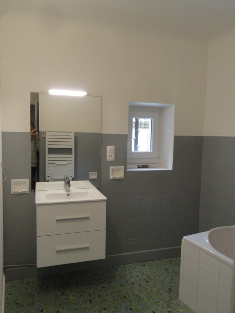 Nouveau tableau électrique, reprise des murs et travaux de peinture à la chaux sur tout l'ensemble de la maison, ponçage de tous les sols en marquèterie pose d'un vitrificateur de finition, afin de leur redonner un cachet authentique. Agencement d'une nouvelle cuisine fonctionnelle et lumineuse. Implantation d'un nouveau mobilier dans la salle de bain. Pose de volets électriques solaires côté verrière. Cette maison de village a été mise en location à la fin des travaux.