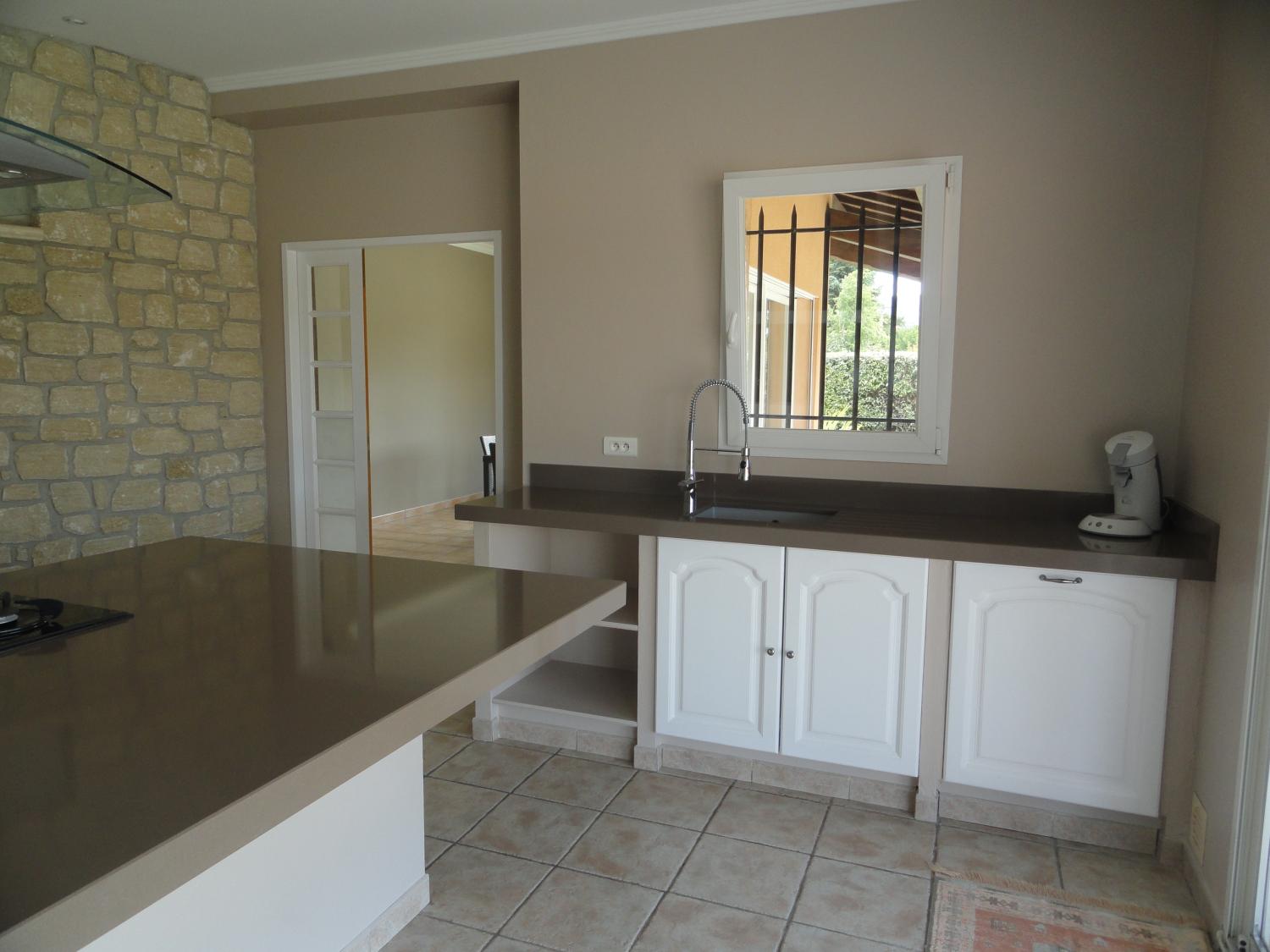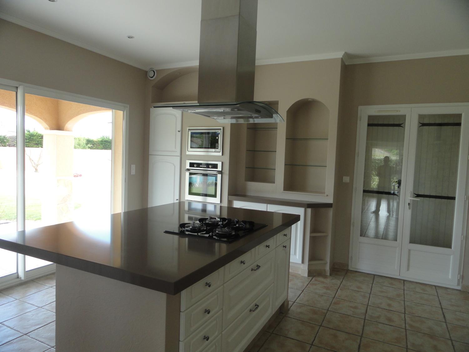 Le point fort de cette villa était la cuisine, donc nous avons mis l'accent sur la mise en valeur de cette pièce par des matériaux nobles pour un effet contemporain et intemporel.