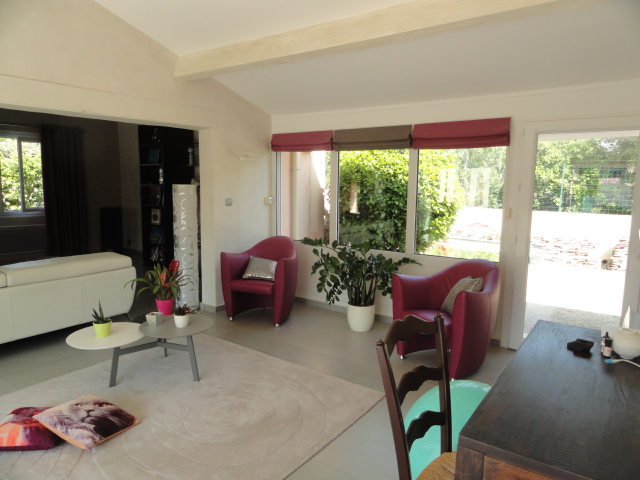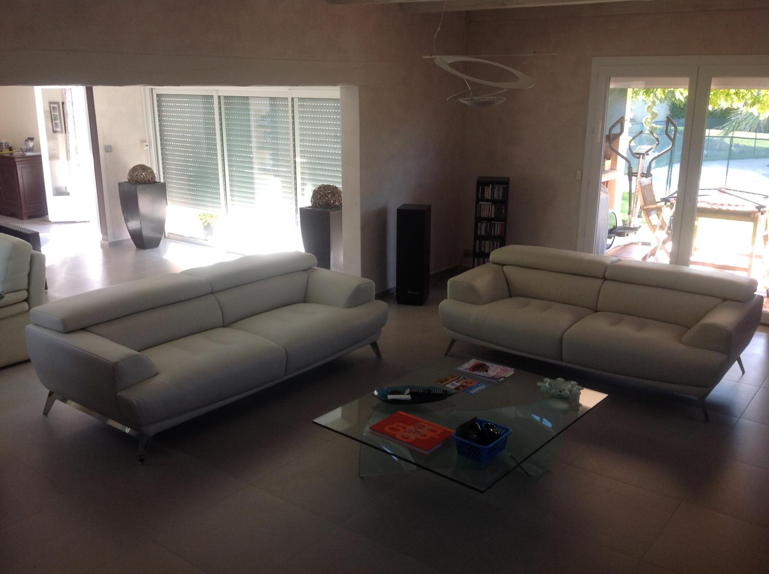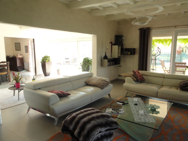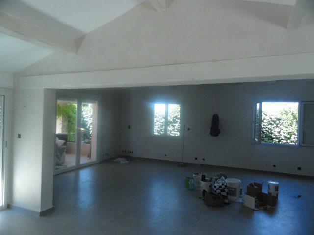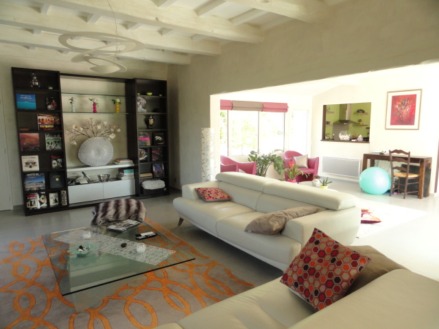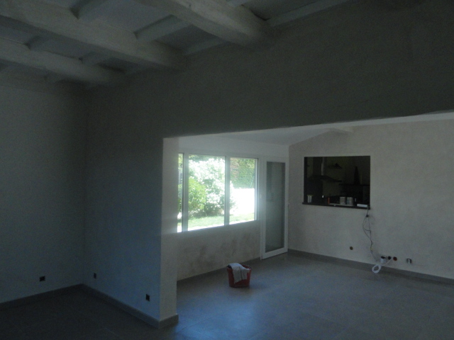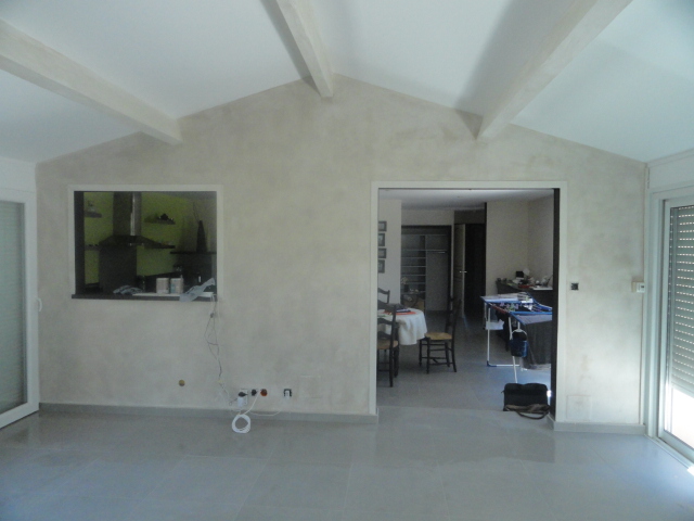 Mes clients souhaitaient un intérieur à l'ambiance plus contemporaine, il fallait tout revoir, les couleurs, le choix des matériaux pour le sol, l'ensemble du mobilier. Après la réalisation de quelques plans 3D, afin qu'ils puissent se rendre compte du résultat, les différents corps de métier de mon équipe, ont réalisé les travaux. La difficulté rencontrée, se trouvait au niveau du sol, il y avait de grande dalles de par feuilles en terre cuite, et notre choix pour le nouveau carrelage, était de la Kerlit en grès Céram d'une épaisseur de 3mm, renforcée par un voile de fibre de verre dalle 60 cm x 60 cm.