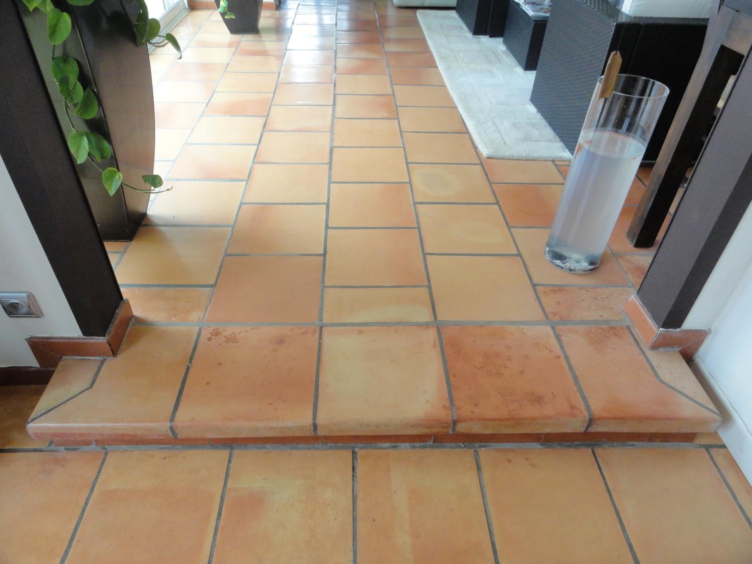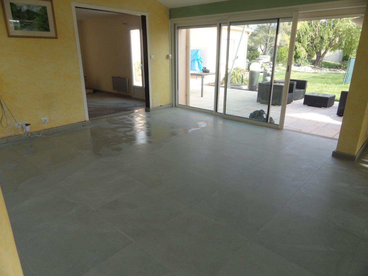 Pour que celles-ci collent bien, il a fallu que le carreleur ponce tout l'ensemble du sol, le résultat final a été obtenu grà¢ce à la solution trouvée pour une adhérence parfaite, sans que les dalles ne se fendent dans le temps malgré la solidité du grès Céram si fin soit-il.